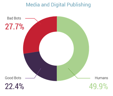Our research also suggests that cybercriminals are targeting media and digital publishing sites to scrape their unique content, publish scraped content on malware-ridden shady websites, and scam visitors. 27.7% of traffic on media sites was bad bot involved in automated activity, including scraping in February.