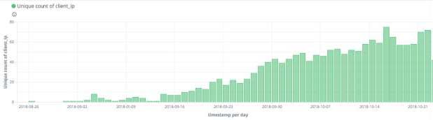 The number of unique IPs from where the requests originated from grew from a few servers to over 70 within the last week.