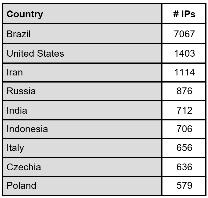 Figure 3: Distribution of unique IPs scanning for the vulnerability
